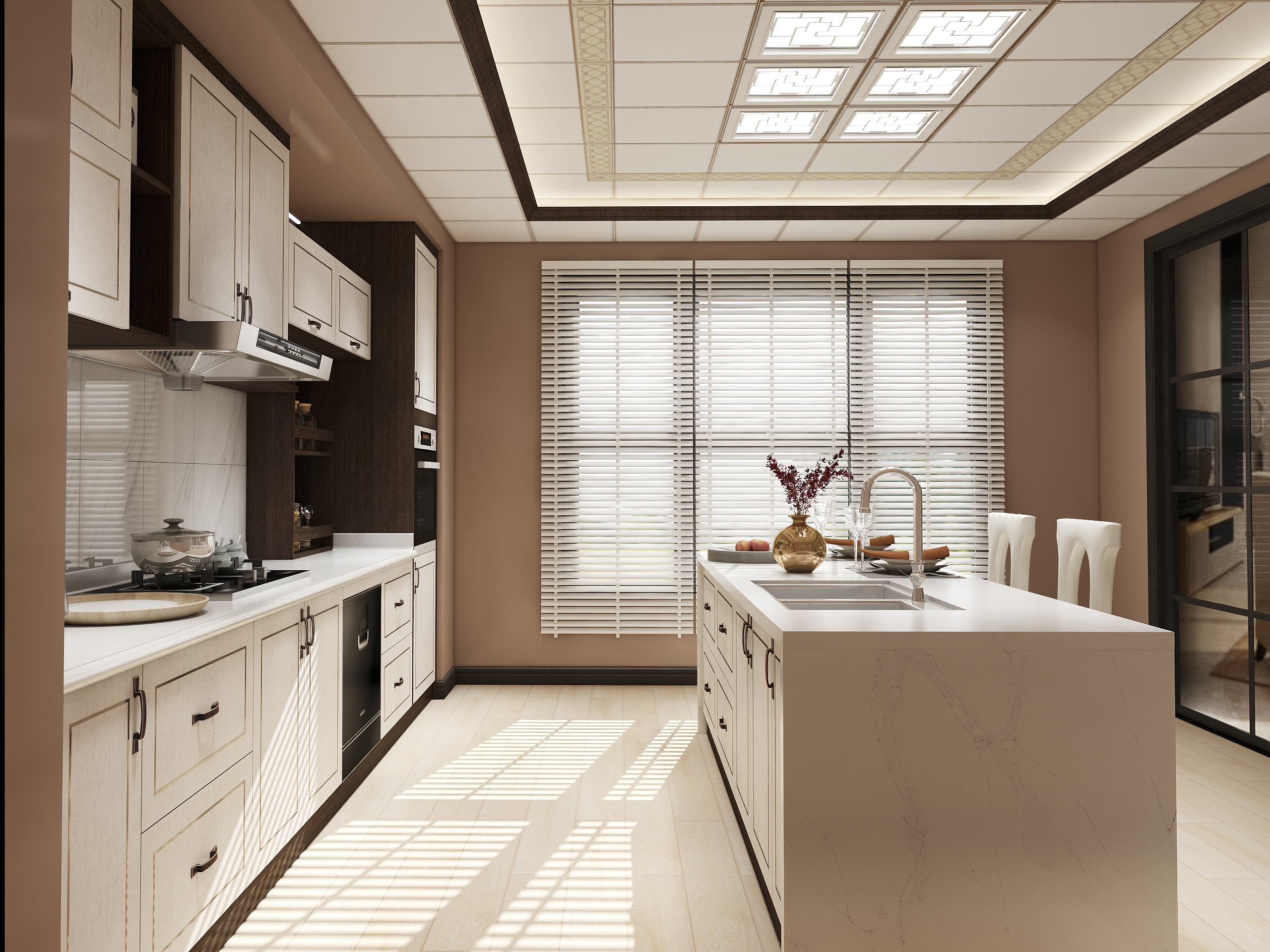 The quartz stone surface is composed of 93% natural quartz stone and 7% environmental friendly resin, pigments, no radiation.